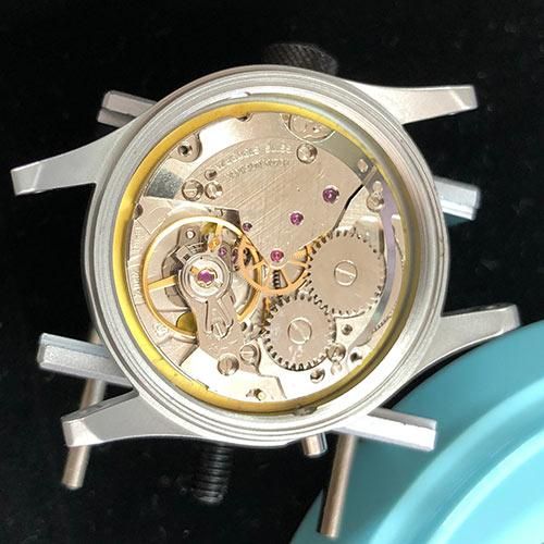 ムーブメント:eta 2801-2 (手巻き)ハック機能付き(秒針停止機能)。