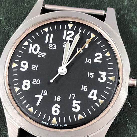 このスペックに基いて当時、ハミルトン、ベンラス、マラソンなどが製造要請に応えています。GG-W-113は、別のミリタリーモデルMIL-W-3818Bとワンピースケースの外観が非常に似ていますが、GG-W-113はパイロット向け、MIL-W-3818Bは陸軍に供給されたことになっています。